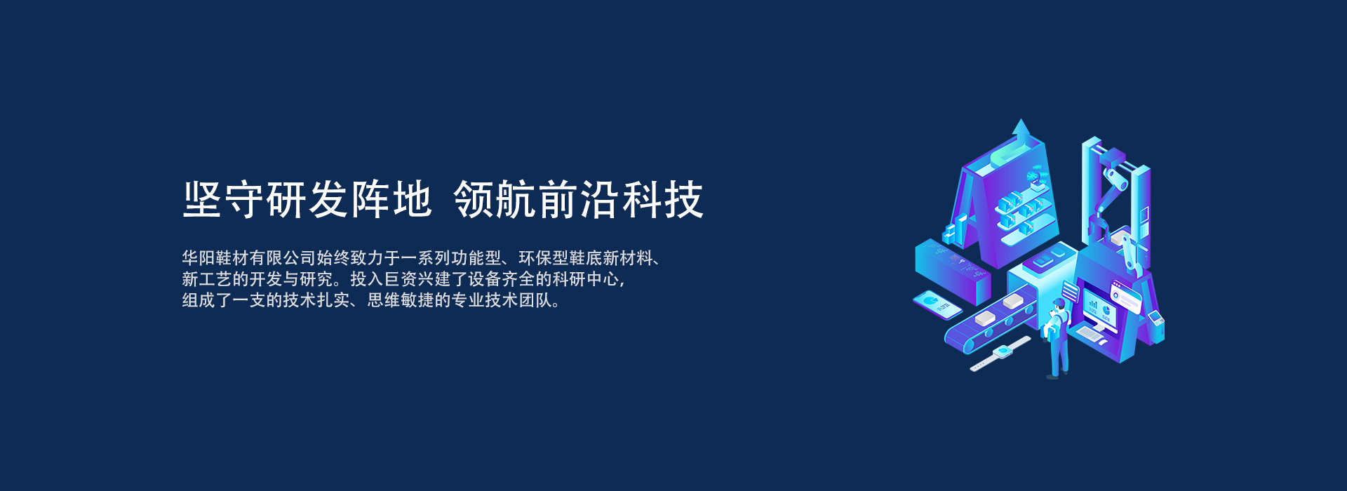 華陽鞋材有限公司始終致力于一系列功能型、環(huán)保型鞋底新材料、新工藝的開發(fā)與研究。投入巨資興建了設(shè)備齊全的科研中心,組成了一支的技術(shù)扎實(shí)、思維敏捷的專業(yè)技術(shù)團(tuán)隊(duì)。全球領(lǐng)先的材料科學(xué)分析儀器和檢測設(shè)備,形成了從材料研發(fā)、新品開發(fā)、實(shí)驗(yàn)測試、技術(shù)轉(zhuǎn)移到規(guī)模生產(chǎn)的一體化作業(yè)流程,為產(chǎn)品的生產(chǎn)提供了有力的品質(zhì)保障。
